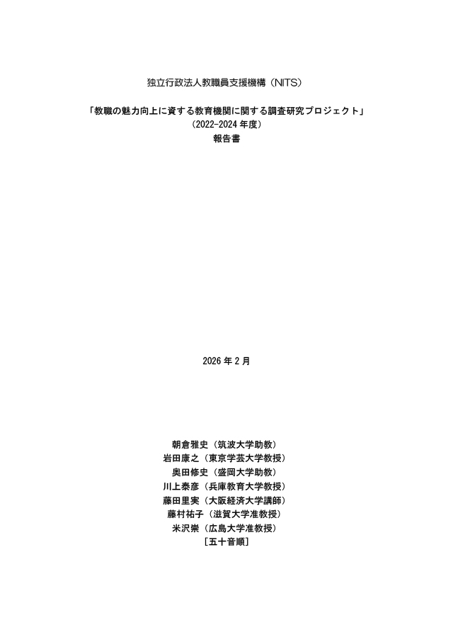 教職の魅力向上に資する教育機関に関する調査研究プロジェクト(令和4年度~令和6年度)